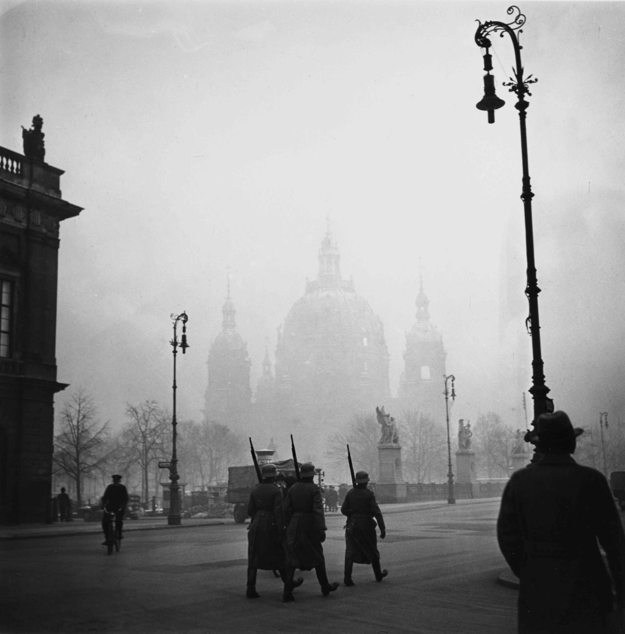 Vishniac’s subject matter in Berlin rapidly became more serious: election posters supporting Hitler; soldiers marching through the streets; a racist, pro-Aryan phrenology display. “In my opinion, that’s how he started getting involved in taking these photographs of the Jewish experience—first in Berlin, and then going to Eastern Europe,” Bialis says.