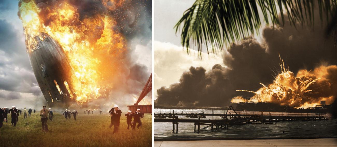 Newsreel crews filmed everything. The mysterious crash of an airship on the shore of the English Channel. Earthquake destruction on Melfi, in Italy. Iron workers having lunch on a New York skyscraper beam. President Hoover’s swearing-in, and ex-President Coolidge dressed as a cowboy. And “every sort of blast,” according to cameraman Peden, from bombs to explosions at sea.