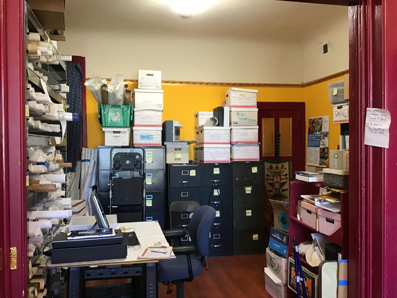 With its first Preservation Assistance Grant in 2016, Precita hired conservator and archivist Dr. Cornelia Bleul-Gohlke and two graduate student interns in Museum Studies. This team performed a preservation assessment, which involved first examining Precita’s storage capabilities and then determining which items were of archival significance. Finally, Dr. Bleul-Gohlke and her team developed a plan for improving Precita’s systems of storage, organization, and public access. In 2019, a second grant made it possible for Precita to begin implementing the preservation plan by purchasing shelving, storage boxes, and environmental monitoring materials like smoke detectors and water alarms. It also hired the consultant Julio Enrique Badel, who had first become familiar with the collection and preservation needs as an intern during the first grant. Thanks to these grants and the work of Precita’s staff, fragile images are now rolled in protective cases, project files are organized chronologically for easy research access, and other documentation materials are categorized and boxed. In addition to completing this work, Badel trained Precita staff on proper storage and inventory so that as new murals are painted, their documentation can be added to the collection.