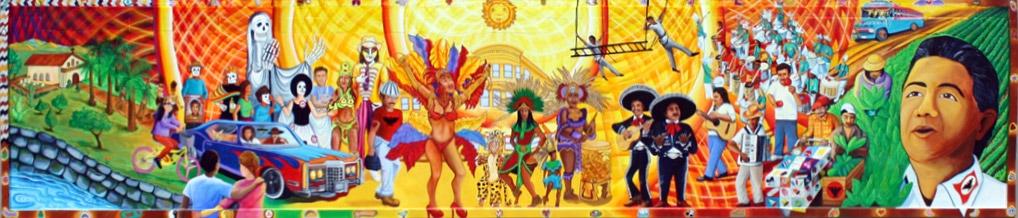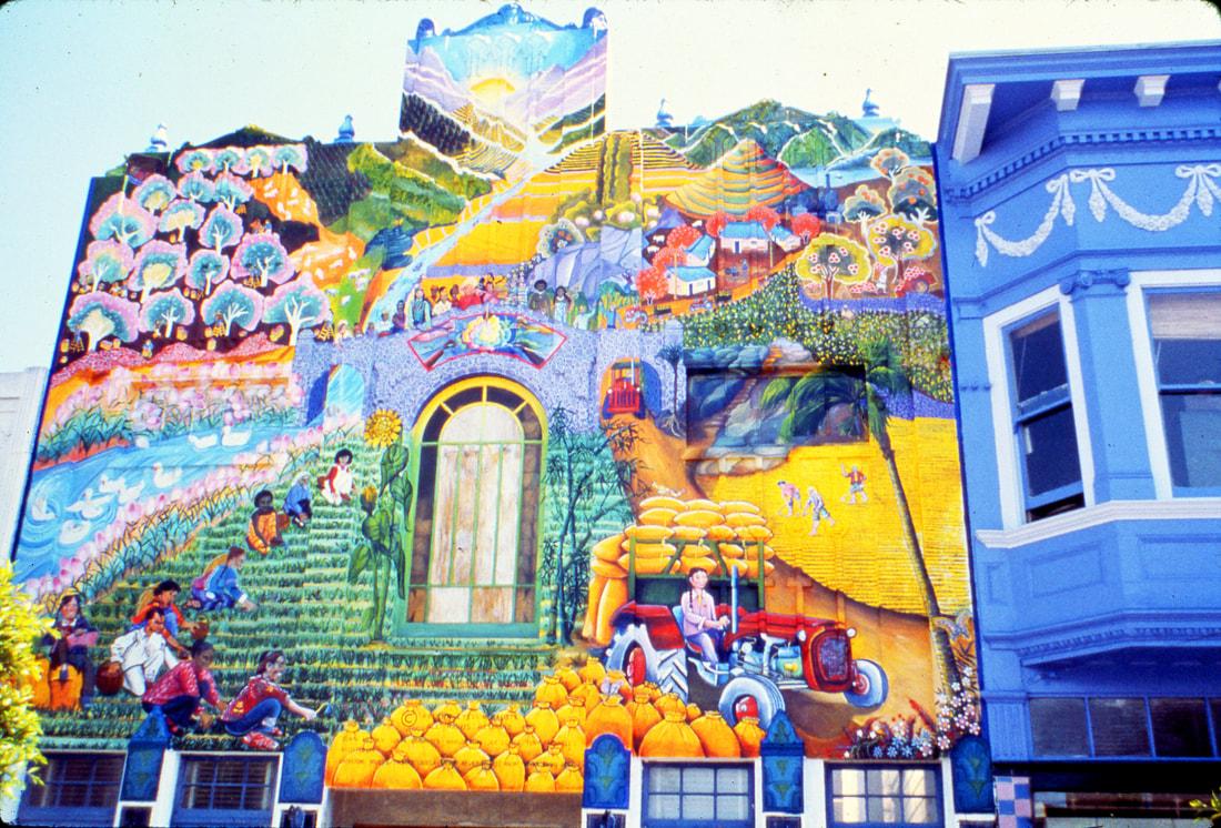 Since its founding by Susan and Luis Cervantes in 1977, Precita Eyes Muralists Association has created and maintained hundreds of murals throughout the Mission District in San Francisco, California. Through collaboration with communities there, Precita Eyes has contributed to the area’s uniquely dense collection of murals, securing the neighborhood’s historical status as the “cultural heart of the Chicano movement in California.” The murals, which adorn the walls of laundromats, elementary schools, and healthcare centers, blend traditions and styles from ancient Central America, early twentieth-century Mexican muralist movements, and recent immigrants from across Latin America.