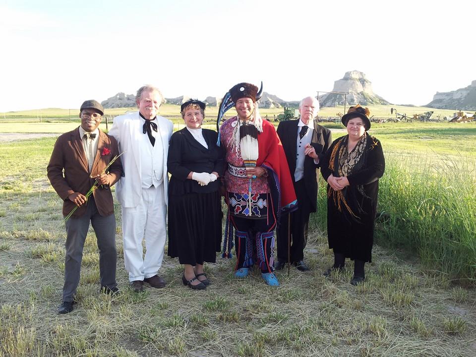 2014 Nebraska Chautauquans. L-R: George Washington Carver, Mark Twain, Laura Ingalls Wilder, Chief Standing Bear, General Grenville Dodge, and Willa Cather.