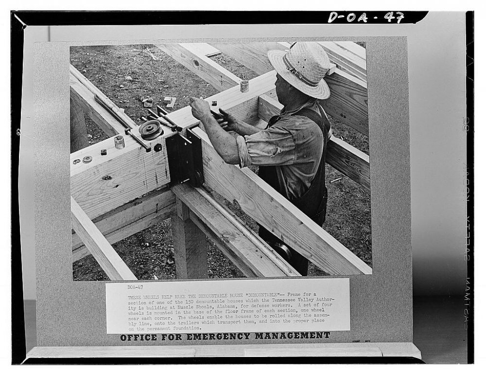 Frame for a section of demountable houses, which the Tennessee Valley Authority (TVA) built at Muscle Shoals, Alabama, for defense workers.
