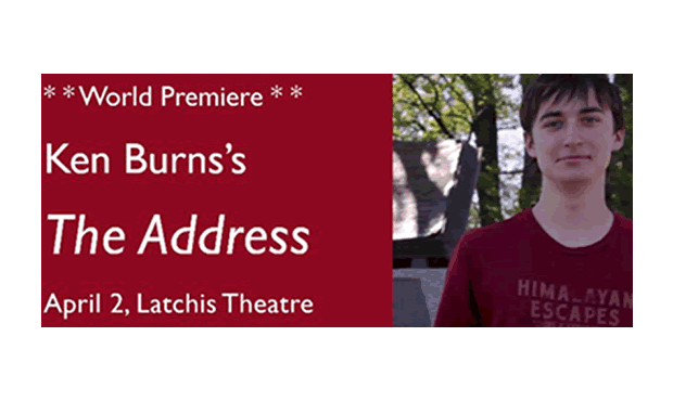 Ken Burns's The Address will have its world premiere April 2nd at the Latchis Theatre in Brattleboro, Vermont. This special event will support the Vermont Humanities Council, the Greenwood School, and Latchis Theatre.