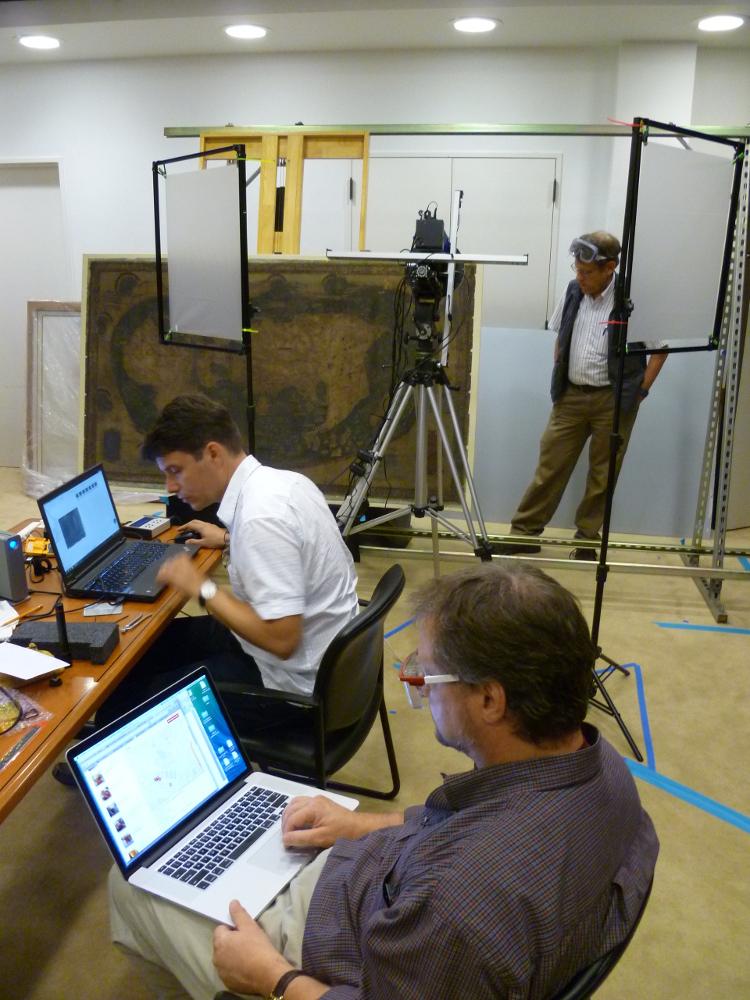 Van Duzer and his colleagues transported a custom-designed multi-spectral imaging system (see images in gallery) from Oxford, Mississippi, to New Haven, where they are working closely with the curators and the digital technology team at the Beinecke Library. They divided the Martellus map into 55 overlapping regions, or tiles, and took 22 images at varying wavelengths per tile. When the project is completed next year, digital processing should reveal any previously illegible text and images on the map. With metadata assigned to the images, information will be made available about the content and imaging conditions. Images of the Martellus map and metadata will be made freely available to the public in early 2015 via the Beinecke Digital Library Web site. National Geographic is also planning an article on the Martellus map with publication of the multi-spectral images. Thanks to NEH funding, the public will shortly have access to a set of technical images of the map that will reveal knowledge about map making and geography at a critical moment of global exploration.