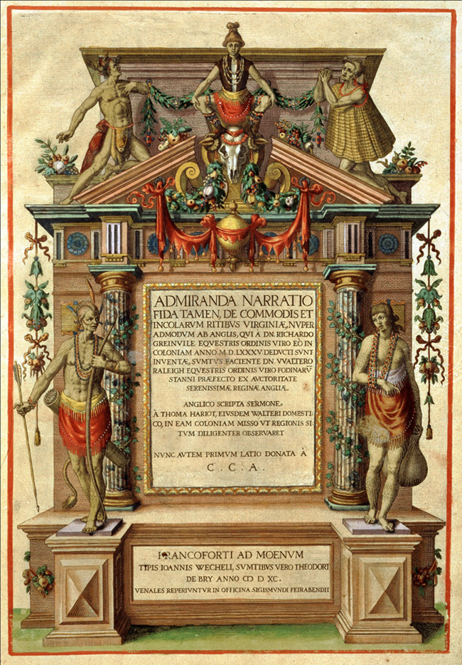 Detail from the title page of Thomas Hariot’s "A Briefe and True Report of the New Found Land of Virginia," 1590