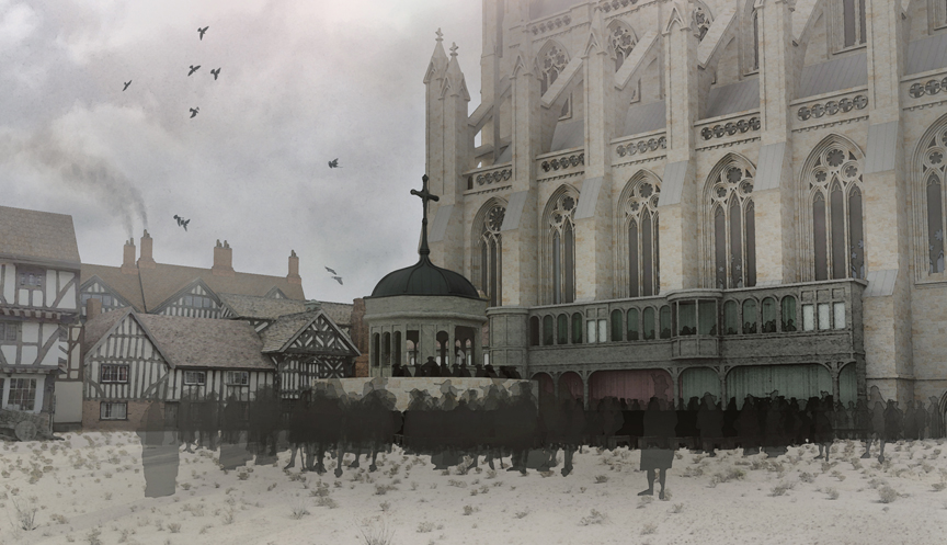 Paul’s Cross, from the Visual Model, constructed by Joshua Stephens, rendered by Jordan Gray.