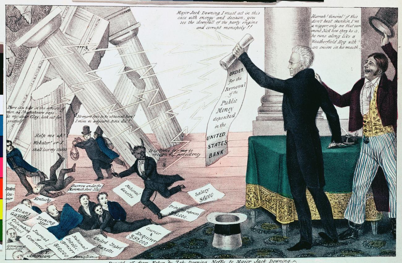 But not to Andrew Jackson. Jackson came to the presidency with a deep sense of grievance against his enemies, real and imagined, in the existing political establishment and with a conviction that the government had fallen from Jeffersonian austerity into profligacy and corruption. This he was determined to reverse. The Bank was barely mentioned in Jackson's 1828 successful campaign against incumbent John Quincy Adams. But, after assuming office, Jackson learned of branch officers using the Bank as what one Jackson partisan called “an engine of political oppression” against his followers. Asked to explain, Bank president Biddle pronounced the charges “entirely groundless.” He affirmed the Bank's forbearance from politics-and its complete independence from executive control.