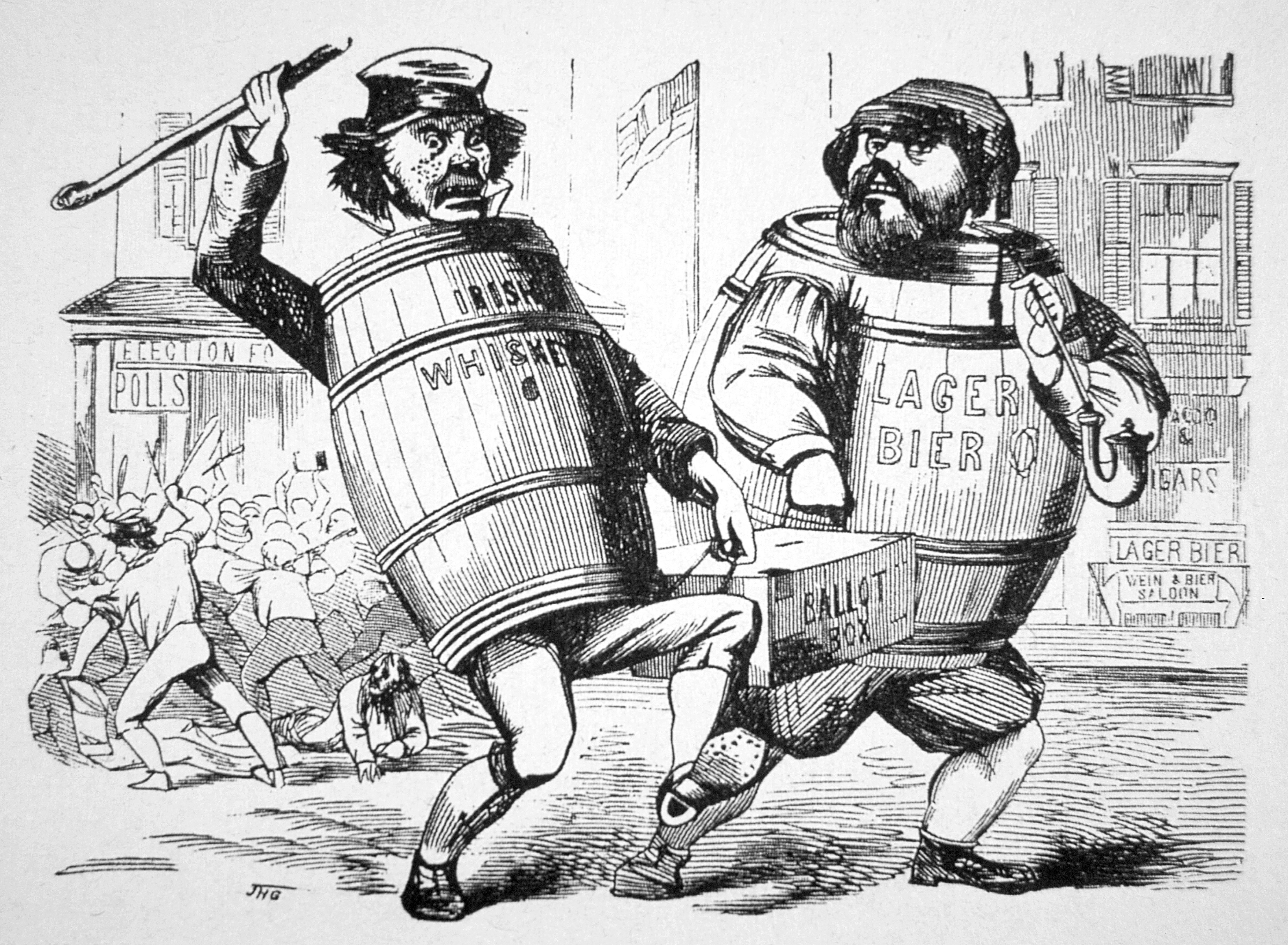 Perhaps the electoral process was never worse than in the years leading up to the Civil War, and nowhere was it as horrid as in Baltimore, which earned the nickname Mobtown largely due to the intimidation, riots, and murder that accompanied elections. During the 1850s, political clubs with names like Plug Uglies, Rip Raps, American Rattlers, and Blood Tubs arose in cocked-fist reaction to an unprecedented influx of immigrants, staggering in from the docks of this port city. These were America's first urban immigrants, mostly Irish and Germans escaping famine and social unrest in Europe. Between 1830 and 1860, their numbers pushed Baltimore’s population from 80,000 to 212,000. Nearly 25 percent of the city had become foreign-born.