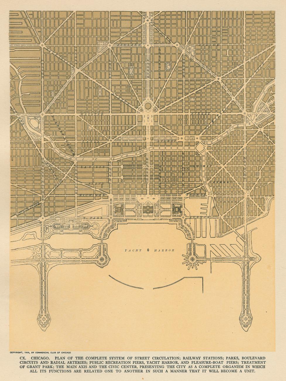 While several groups and individuals suggested changes in this or that part of Chicago, one organization proposed the wholesale transformation of the city. In 1909, the Commercial Club—an elite private organization consisting of exceptionally successful businessmen devoted to civic improvement—published the Plan of Chicago. Arguably the most influential document in American city planning history, the Plan states that the inefficient, unsightly, and unhealthy American cityscape can and must be redeemed. Championing the rational application of enlightened expertise, it is an exemplary expression of Progressive Era thinking. At the same time, it is a magisterial treatise on the proper relationship between people and the cities they build and inhabit.