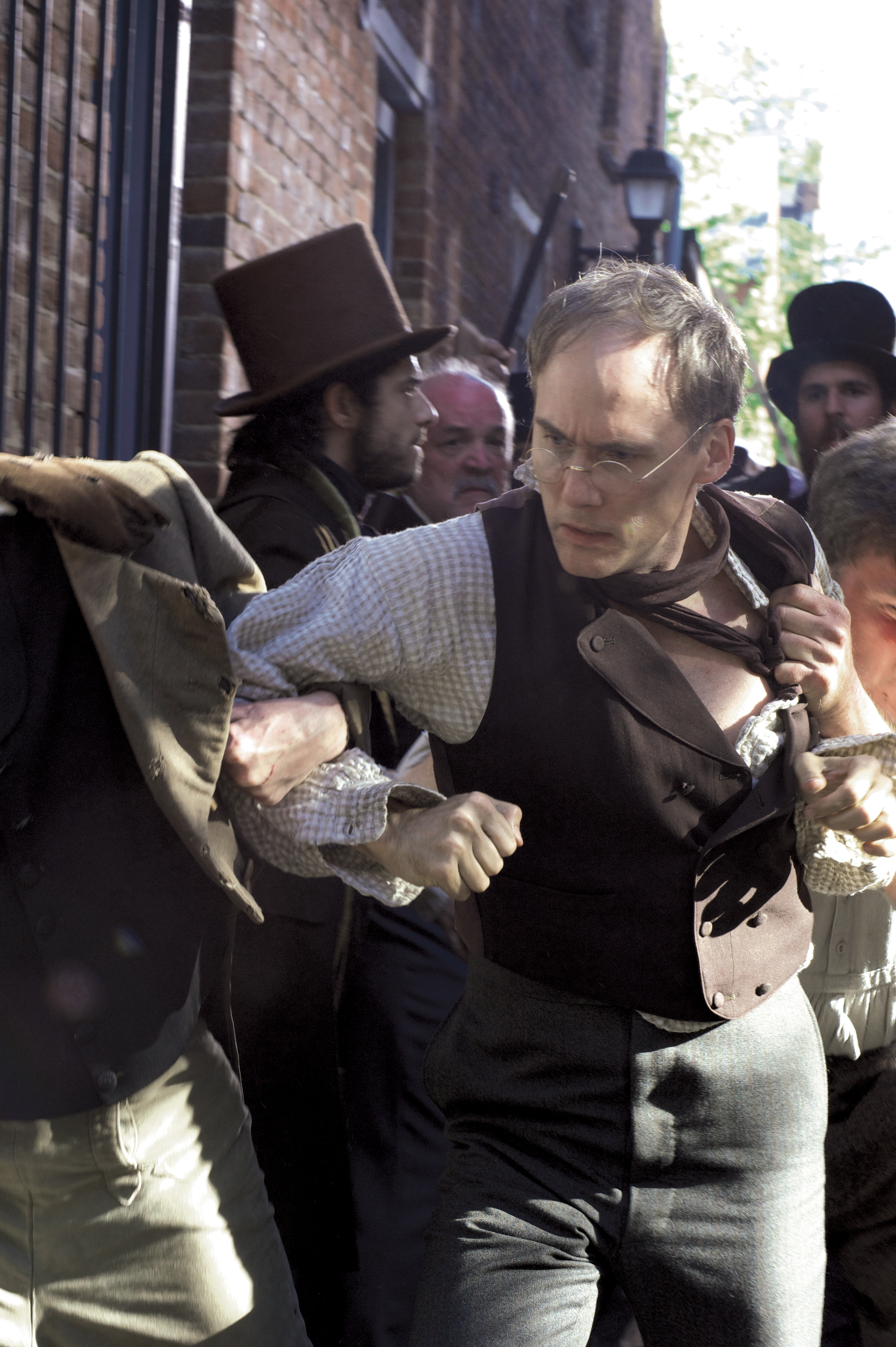 Using the tradition of newspaper exchange, by which editors sent complimentary copies of their latest numbers to each other, Garrison struck up debates, reprinted articles he liked, and added to those that he didn’t his own corrective commentary. His radicalism and provocative rhetoric (the best bits, like his “covenant with death” line, lifted directly from the Bible) made him enemies on both sides of the Mason-Dixon line. Southerners, without much evidence, blamed The Liberator for Turner’s insurrection, and sent a steady stream of death threats and duel challenges to its editor. Northerners, some of them at least, thought Garrison “erratic and unbalanced” and encouraged him to shut down his paper altogether. Once, a proslavery mob in Boston tried to lynch him—a scene dramatically played in the film—and would have succeeded if it weren’t for a few burly sympathizers who turned him over to the authorities instead.