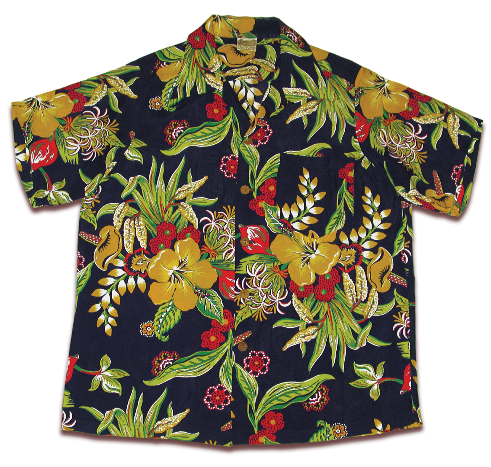 After attending Whittier College and serving as a fighter pilot during WWII, in 1948, with the help of his mother, he established Shaheen’s of Honolulu and Surf ‘n Sand. Although it is often a costly endeavor to manufacture in Hawai‘i, the most isolated chain of islands in the world, Shaheen was committed to doing so. He managed to keep his entire vertical operation in Honolulu, from large-scale screen printing to manufacture and distribution. An avid inventor, Shaheen engineered and constructed his own machinery to print, dye, and finish his fabrics. In 1950, he opened the 7,500 square foot Surf ‘n Sand Hand Prints factory near Waikiki. Two years later, the factory was printing 60,000 yards of fabric per month. By 1958, he had established a chain of a dozen retail stores and the company posted $4 million in sales.