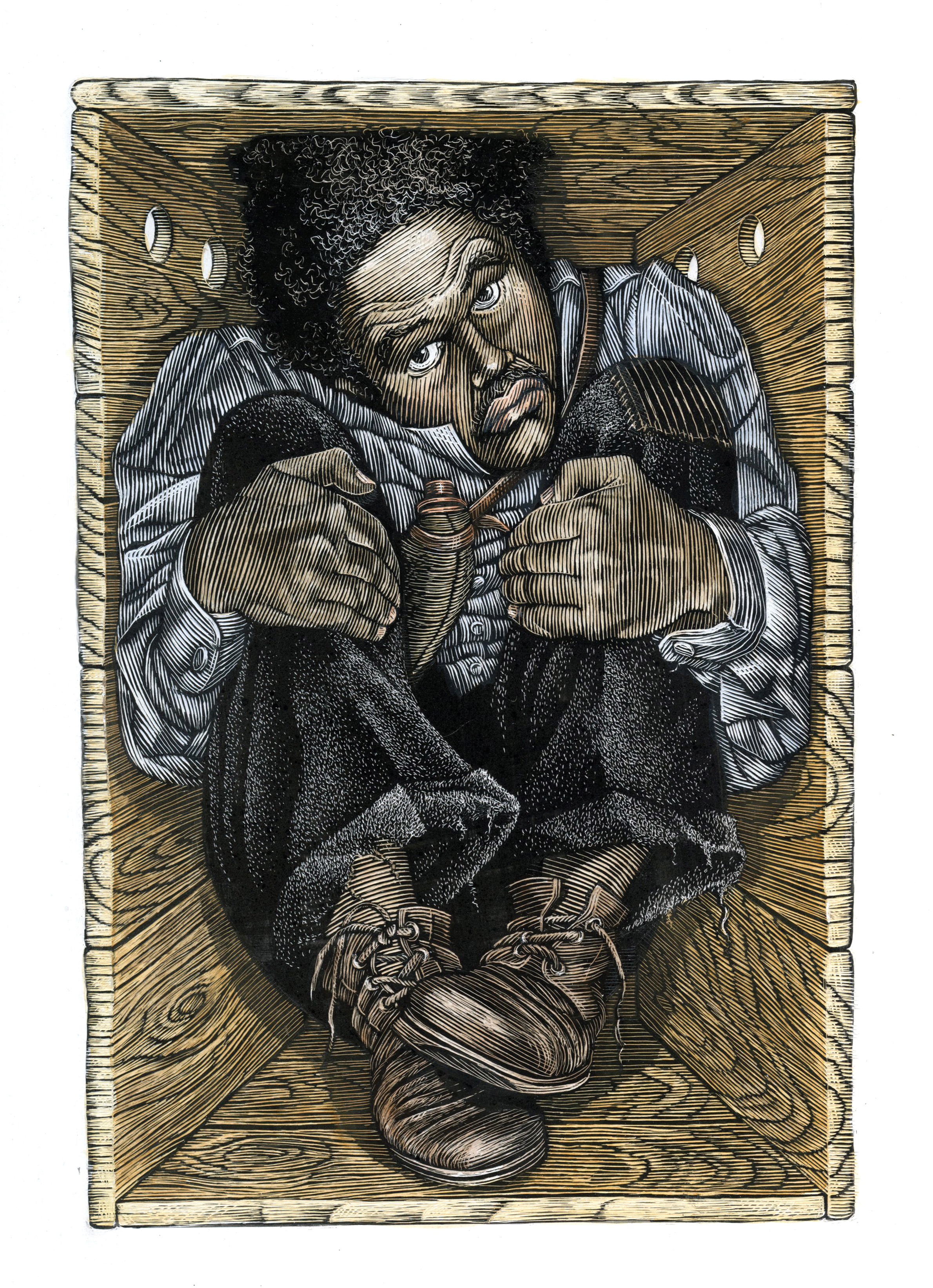 There have been several depictions of Henry “Box” Brown’s unlikely flight from bondage (including a play by Tony Award-winning author Tony Kushner), the first of which was provided by Brown himself: His 1851 Narrative of the Life of Henry Box Brown offers both a moving account of his life in servitude and an extremely bitter harangue against the greed and false piety of slave holders. A favorite of his master, the successful planter and Richmond mayor John Barret, Brown was seldom subjected to the extreme deprivation and violence that haunted the lives of most slaves. His comparatively fair treatment, however, afforded him no peace of mind. “The slave has always the harrowing idea before him—however kindly he may be treated for the time being—that the auctioneer may soon set him up for public sale and knock him down as the property of the person who, whether man or demon, would pay his master the greatest number of dollars for his body,” he wrote.