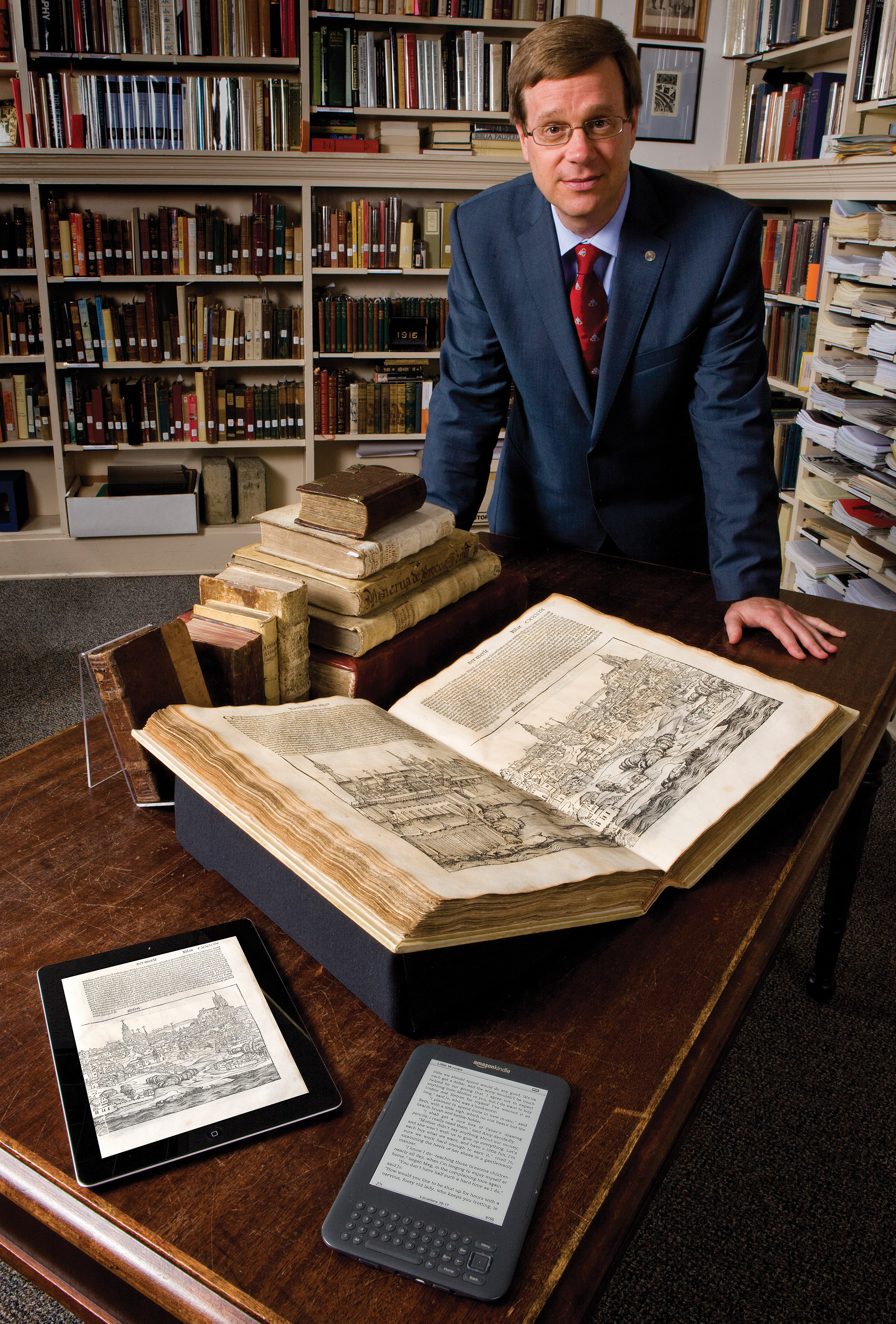 He makes that point as a way of emphasizing that “digital is not the enemy,” noting also that he has introduced courses at RBS to support that conviction. “One of the first things that I did when I came here was recruit faculty and help them design a course called ‘Digitizing the Historical Record,’ and another called ‘Born Digital Materials.’ But most of all I want people who care about printed books, as I do passionately, to have a place at the table in the digital domain. I think that the people who work on printed books have a great deal to learn from the way the digital is moving forward, but I also think that we have something to contribute to that conversation as well. So it’s going to be ‘both-and,’ not ‘either-or.’ We should never be in a posture of either-or. Doing so makes us less intelligent, whereas being capacious and hospitable, even though change may be painful, being hospitable to change makes us more intelligent over time.”
