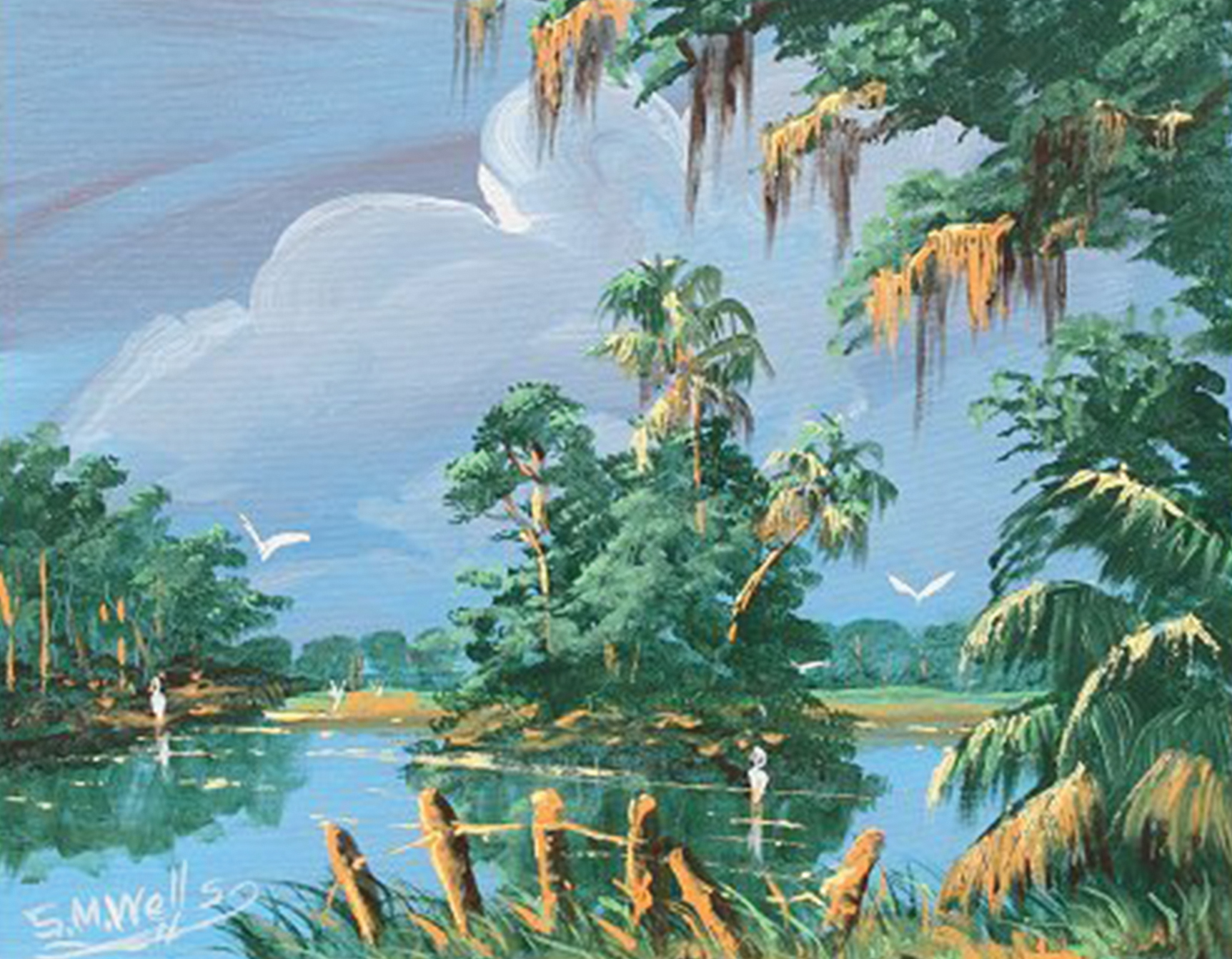 It was an era when most African Americans in Fort Pierce were relegated to working in kitchens or fields, when Jim Crow prevented them from using the same water fountains as whites, and few, if any, black artists could be found in history books. Despite the obstacles, a loose group of creative and entrepreneurial African Americans dared to break the bounds of poverty and segregation by capturing the rugged natural beauty that they saw around them. With quick strokes of their brushes and swift sweeps of bold colors with palette knives, they captured vibrant coastal sunsets framed by palms, royal Poinciana trees in flaming red bloom, and interior wetlands touched by egrets, ibis, and roseate spoonbills.