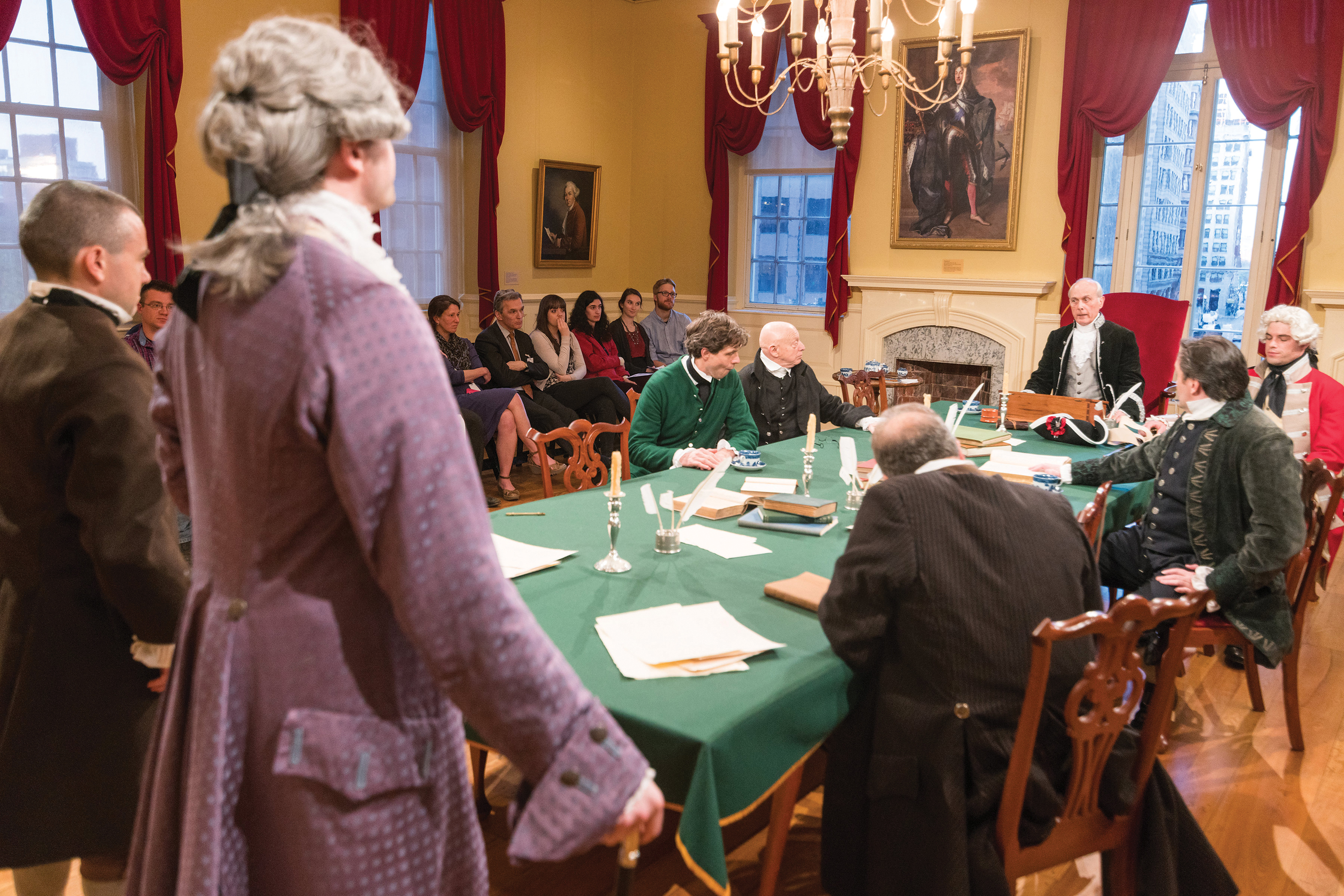 Gabridge’s commission called for a one-hour play that rendered the council’s March 6 debate gripping for modern audiences. The historical record offered some leeway, as accounts of that meeting are incomplete and conflicting (pre-Revolutionary Bostonians argued about everything). Gabridge limited the cast, dropping some historical figures to ensure the audience could get to know all those who remained.