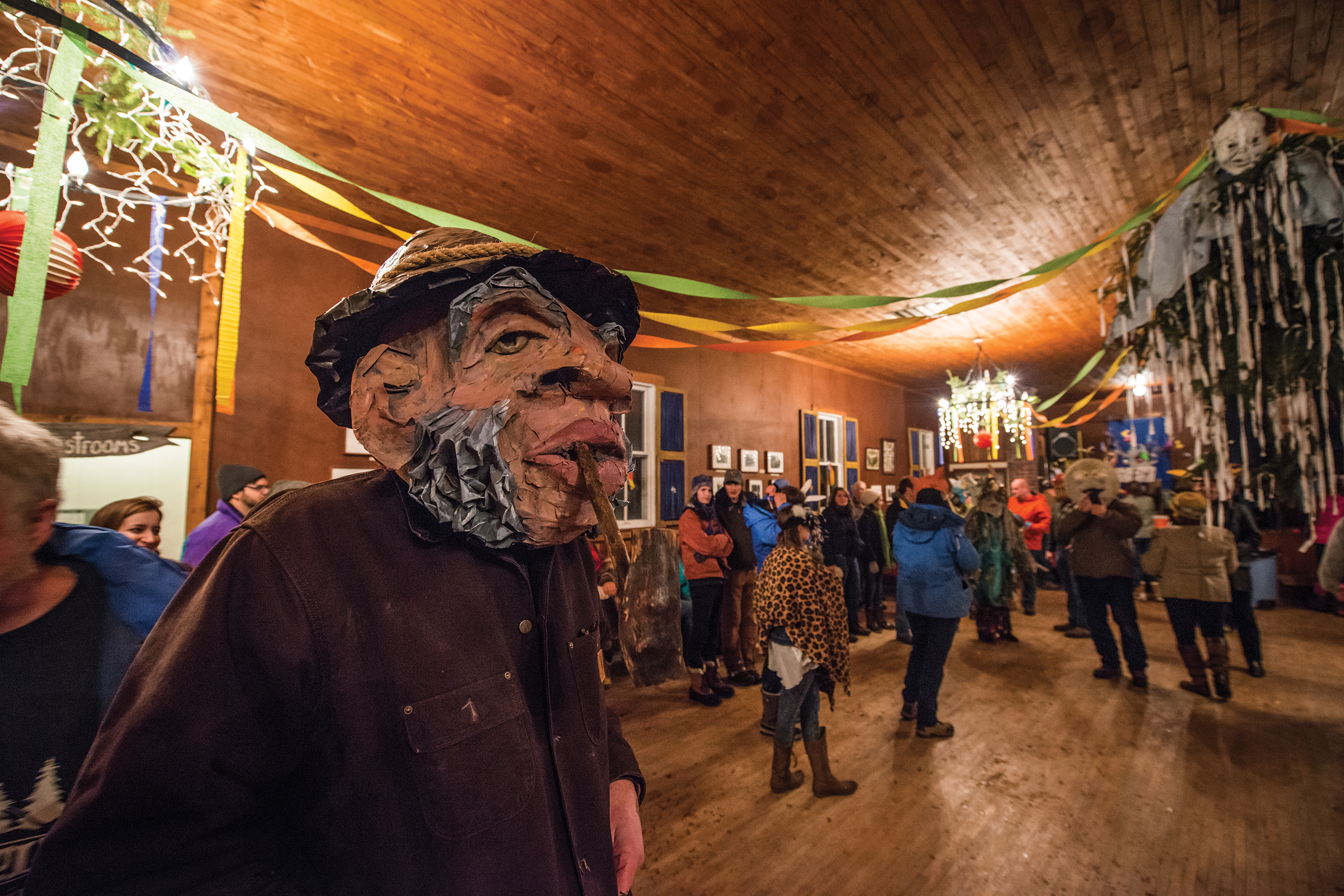 Helvetia’s Fasnacht—an amalgam of the traditional Swiss Fasnacht, and Sechselaüten, a rite of spring—was my first introduction to the town. In the winter of 2011, a friend and I made the trip from North Carolina to West Virginia to visit a mutual friend. She had told us to pack masks for Fasnacht, but we didn’t know much else about it. After making the steep winding drive up the mountain, I arrived in Helvetia disoriented but was instantly charmed. Visitors wandered the town, rosy-cheeked and bundled in wool sweaters, stocking caps, and boots. Old-time music emanated from a building as onlookers ate sausage and sauerkraut. When we entered the Hütte, with its handmade ladder-back chairs, farm tools, wood fire, and frosty mugs of beer, I felt I had been transported to some Nordic oasis, a poster child of coziness the Danish call hygge, or what the Swiss might call gemütlichkeit. After our Swiss sampler plate, we donned our masks and joined the masquerade from the Star Band Hall to the Community Hall (a distance of about two blocks). There, the Helvetia Star Band warmed up as a local square-dance caller assembled couples on the dance floor. An effigy of Old Man Winter hung from the rafters, and we quickly found partners and joined in, swinging and promenading under his galoshes. After hours of waltzes, squares,schottisches; and a mask contest, at the stroke of midnight a local girl climbed up on her brother’s shoulders and cut the old man from the rafters. The dancers hoisted the rag figure in the air and threw him on the bonfire outside as the cheering crowd erupted in a triumphant rendition of John Denver’s “Take Me Home, Country Roads.” As the last rags of the effigy were engulfed in flames, my eyes followed the embers up to the sky, past the swaying pines, merging with the fiery stars. It was my first taste of Helvetia’s magic.