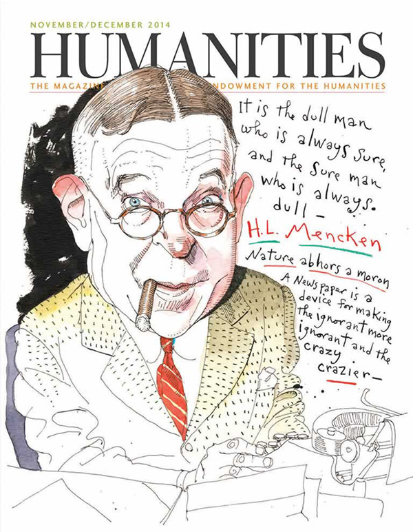 During the Great Depression, H. L. Mencken, pictured with cigar and quotations, regained the affections of the reading public by writing about his childhood.