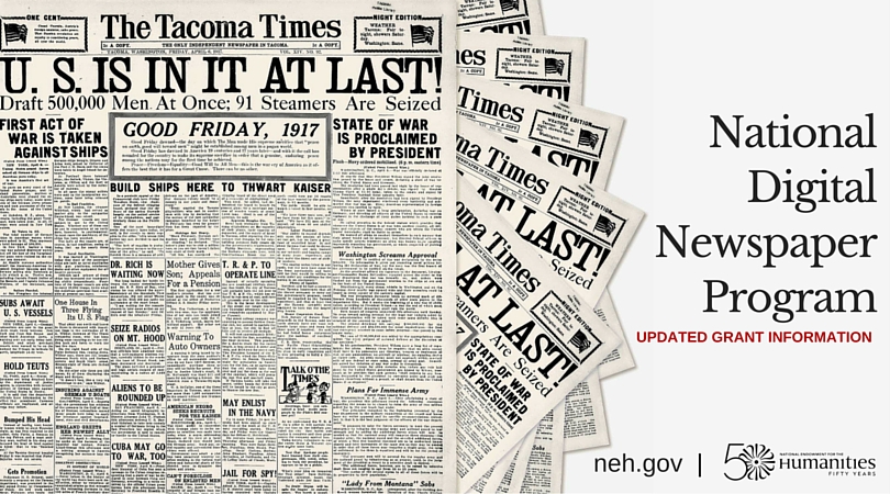 The National Endowment for the Humanities (NEH) and Library of Congress are pleased to announce the expansion of the chronological scope of the National Digital Newspaper Program (NDNP)!