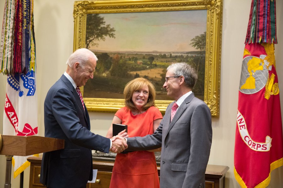 Vice President Biden performs the Ceremonial Swearing In of National Endowment for the Humanities Chairman Adams, at the White House, on July 22, 2014.